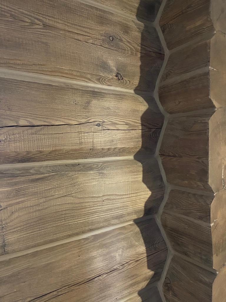 Для успешной герметизации необходимо очистить поверхность бревна от пыли, грязи, старой пакли, лако-красочных материалов, где необходимо - подбить старую паклю.