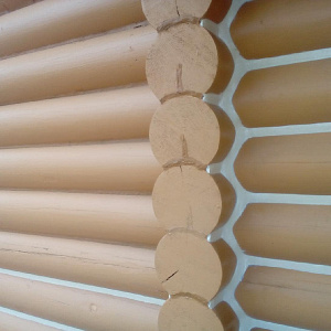 Для качественной герметизации по технологии теплый шов обязательно необходимо прокладывать вилатерм (антиадгезионный шнур). Герметик должен работать на растяжение-сжатие, реагируя на поведение бревна, что обеспечивается при его прилипание только к верхнему и нижнему бревну. Благодаря свойствам прокладываемого жгута, герметик не прилипает к нему, а контактирует только с верхней и нижней кромкой шва.